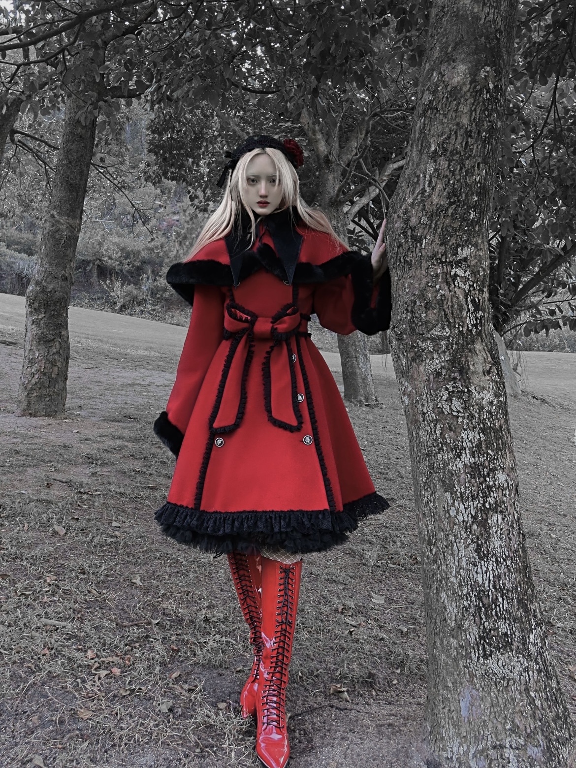 Color classification: [Christmas sacrificial night] red and black cloak coat