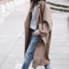 Fashion Long Solid Color Lapel Coat Warm Coat