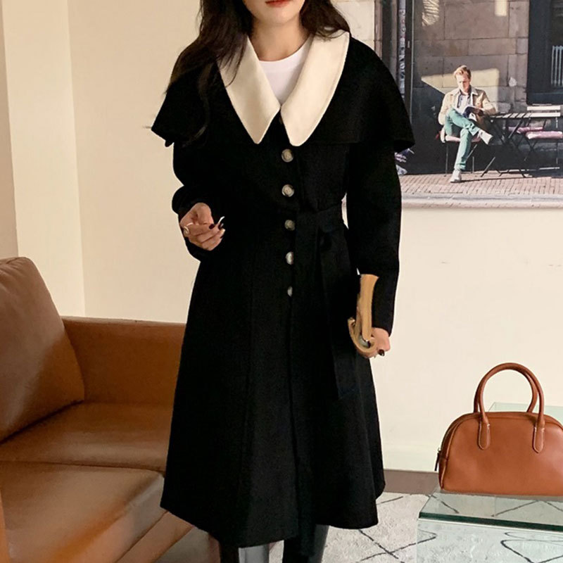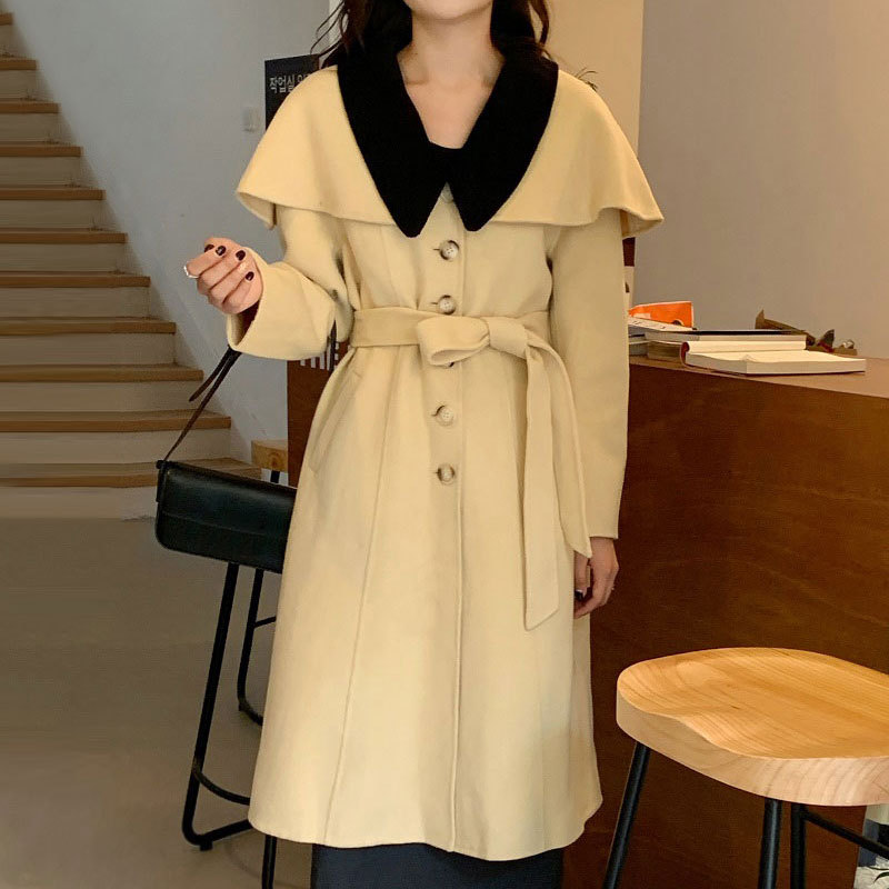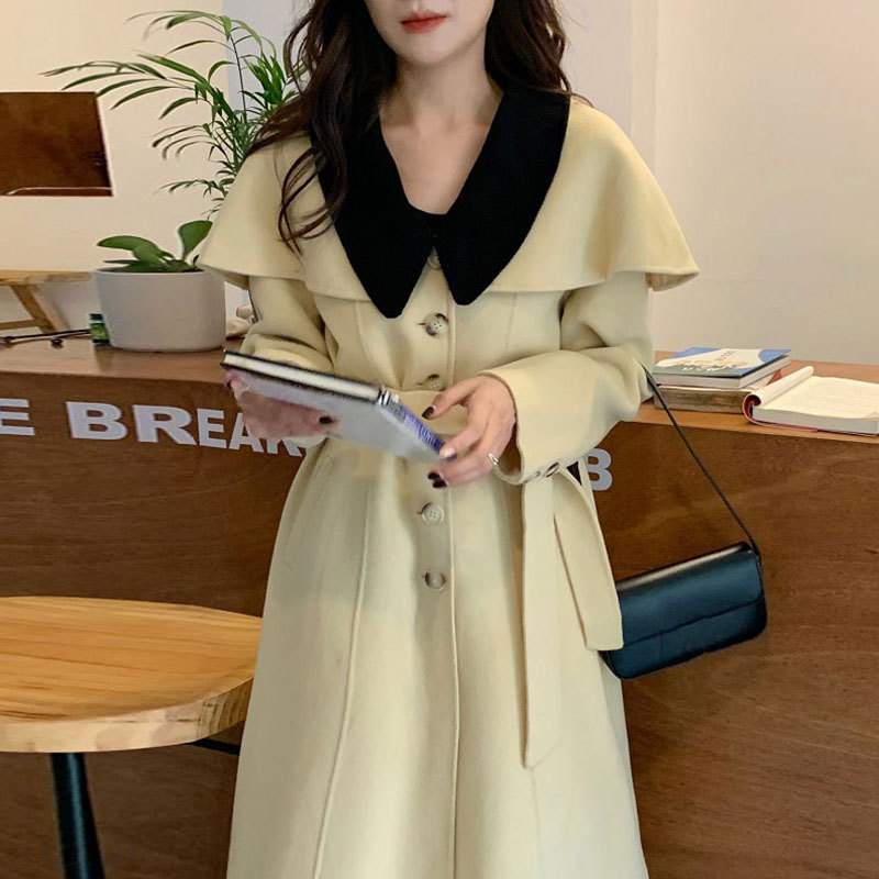 Gentle Cream Yellow Contrast Doll Collar Single Breasted Jacket