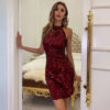 New Sexy Round Neck Geometric Slim Fit Bag Buttock Sequin Short Sleeveless Evening Dress For Ladies
