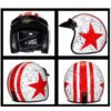 Color: red star on white background, white star on green background, white star on black background, yellow star on white background, yellow star on black background