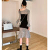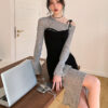 Women’s Fashion Splicing Irregular Fishtail Wool Knitted Halter Dress