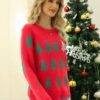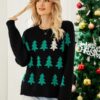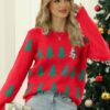 Women’s Jacquard Christmas Tree Long Sleeve Red Christmas Sweater