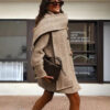 Women’s Polyester Striped Woolen Trench Coat