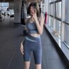 Colour five-point pants-caramel color, five-point pants-blue, five-point pants-purple gray, single-piece bra-caramel color, single-piece bra-purple-gray, single-piece bra-blue, single-piece bra-black, five Split pants – black