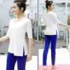 Color classification: black (strap-slit pants) black (elastic straps-slit pants) black (elastic straps, straight-leg pants) royal blue (elastic straps, straight-leg pants), big red (strap-strap pants)