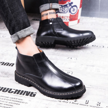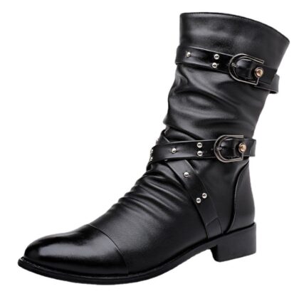 Men’s Retro Dark Stitched Patchwork Square Toe Boots