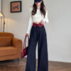 Autumn Loose Straight-leg Pants With High Waist And Wide Legs