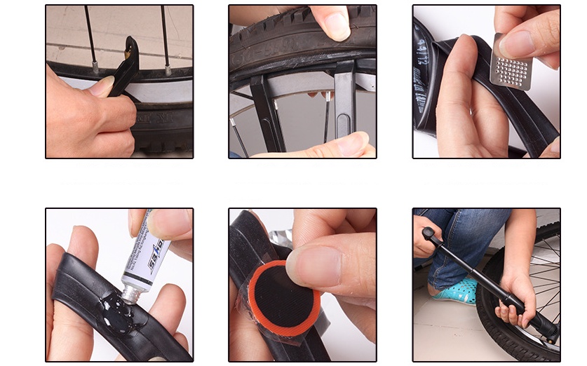 Colour: Black Name: Bicycle tool set (with pump), color: black packing list: Toolkit x1 Mini air pump x1 14 in 1 folding tool. Tire repair box x1 Crowbar x2