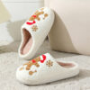 Christmas Snowflake Gingerbread Slippers Winter Indoor Non-slip Floor Bedroom Fuzzy House Shoes For Women Home Slippers