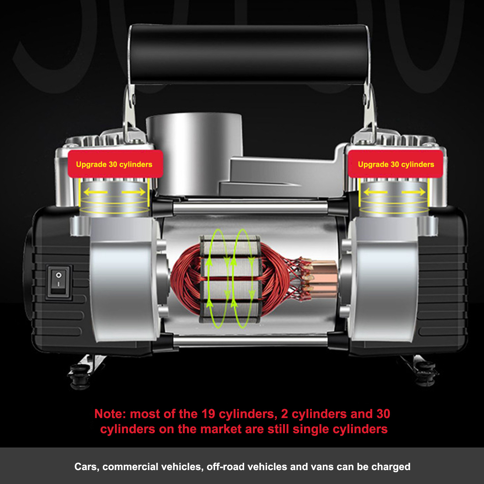 This machine is suitable for all 12V car tires, especially 4×4, medium buses, trucks under 2 tons, cars and other larger tires, with large air volume and fast inflation.
