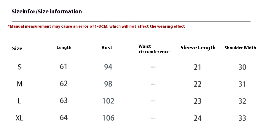 Note: 1. Asian sizes are 1 to 2 sizes smaller than European and American people. Choose the larger size if your size between two sizes. Please allow 2-3cm differences due to manual measurement. 2. Please check the size chart carefully before you buy the item, if you don’t know how to choose size, please contact our customer service. 3.As you know, the different computers display colors differently, the color of the actual item may vary slightly from the following images.