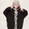 Clothing style details: bow tie, lace