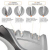 3.The V-shaped cutting head with two crossed carbide blades puts a quick edge on knives. Stage 2 uses ceramic rods to hone the fine edge of your Santoku or Nakiri knives