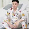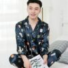 Men’s Thin Silk Pajamas Long Sleeve Suit