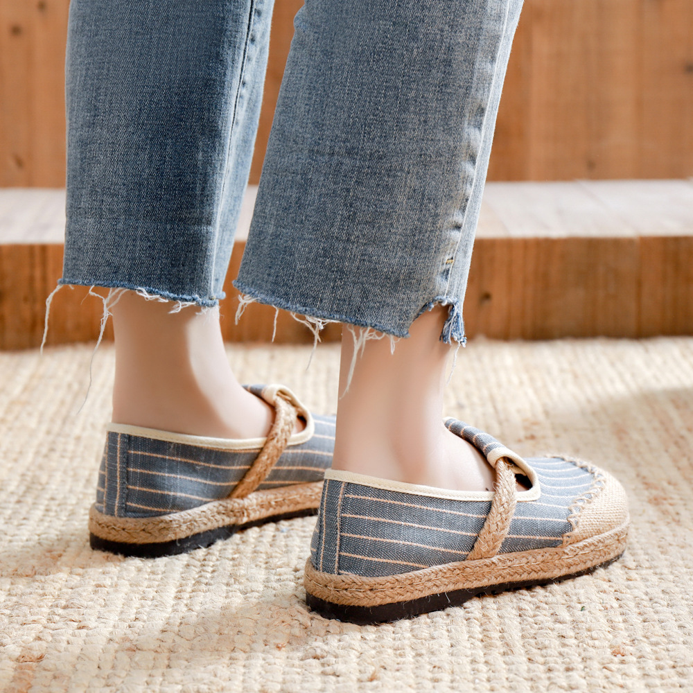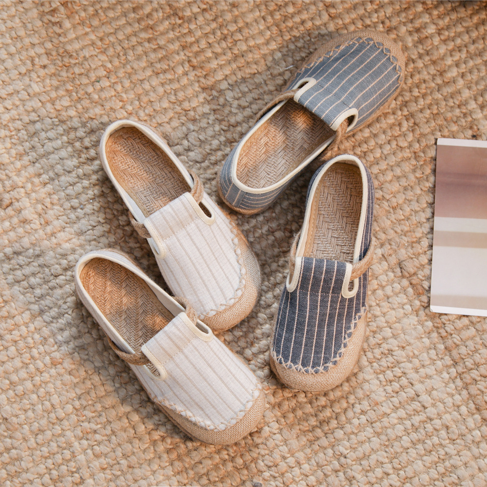 New Linen Shoes Women’s Artistic Striped Color Matching