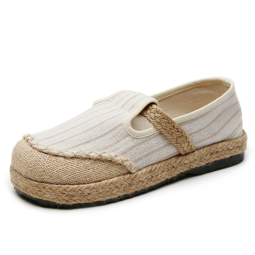 2 მიმოხილვა: New Linen Shoes Women’s Artistic Striped Color Matching
