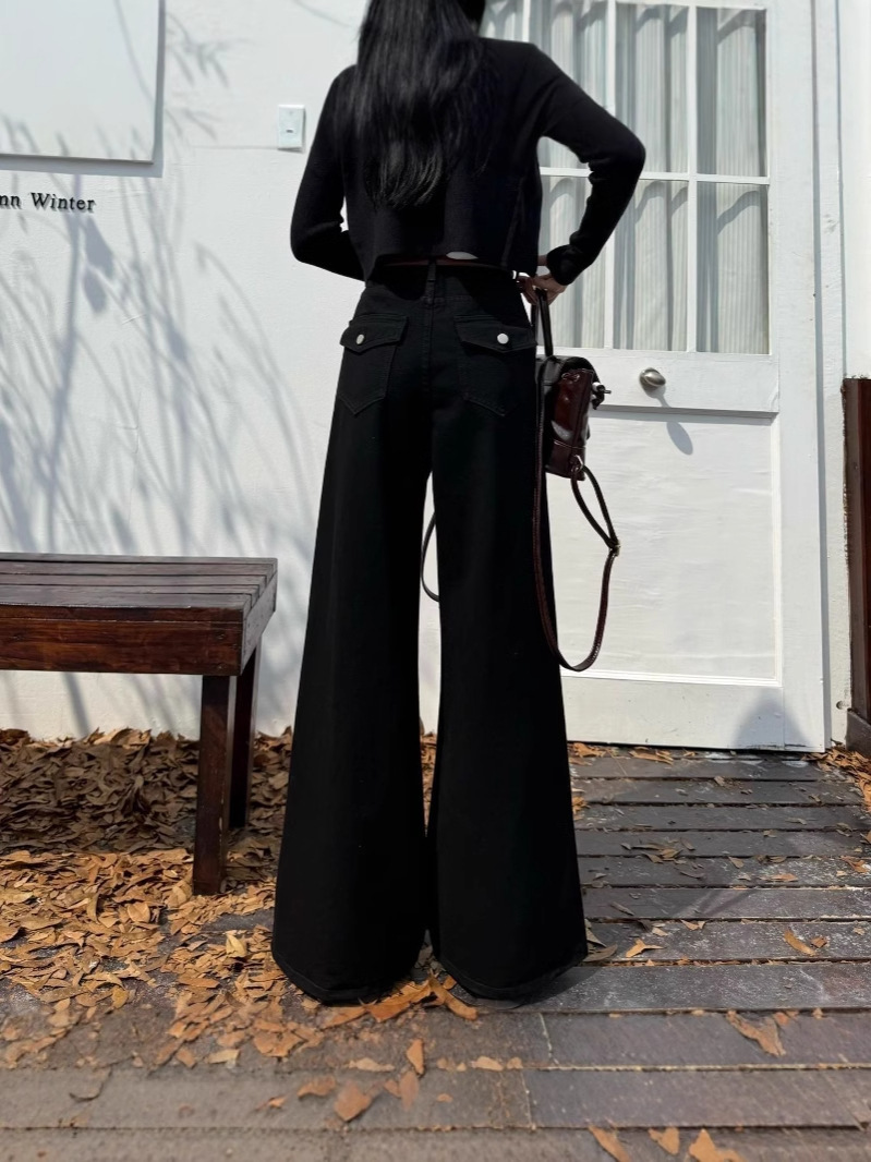 Retro wide-leg jeans for women high waist loose fashionable all-match slim pants
