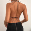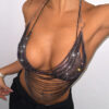Sling Fishnet Rhinestone Halter Top Metal Decoration Two-piece Set
