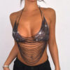 იყავით პირველი შემფასებელი: „Sling Fishnet Rhinestone Halter Top Metal Decoration Two-piece Set“