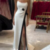 იყავით პირველი შემფასებელი: „Strapless Black And White Contrasting Slit Dress“