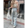 იყავით პირველი შემფასებელი: „Summer Washed High Waist Loose Slim Wide Leg Jeans Women’s Design Light Blue Narrow Straight Floor-length Pants“