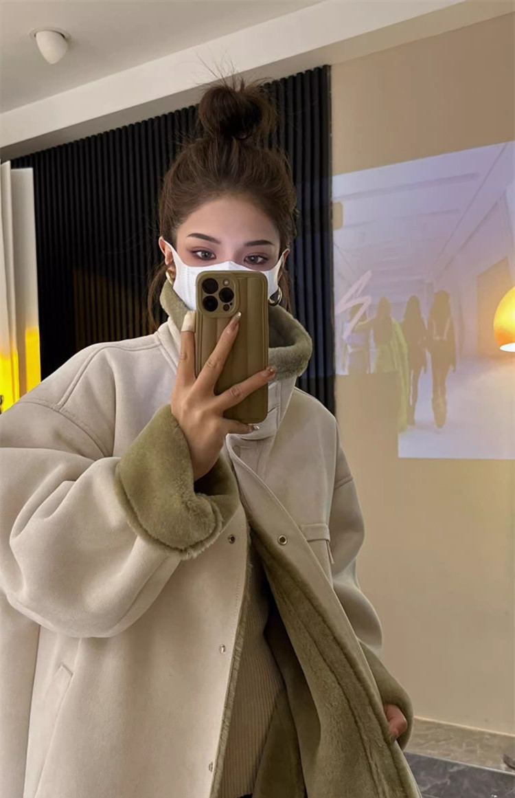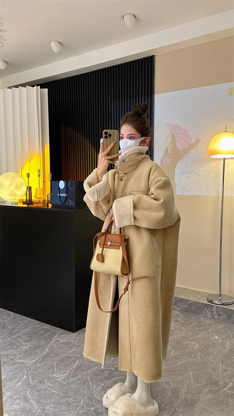 Thickened Imitation Fur Coat Overcoat Women’s Long Lamb Suede