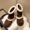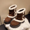 იყავით პირველი შემფასებელი: „Women’s Brown Suede Snow Boots Paired With White Fluffy Thick-soled Martin-style Short Boots, Comfortable Winter Ankle Boots With Sparkling Outfit And Creative Design“