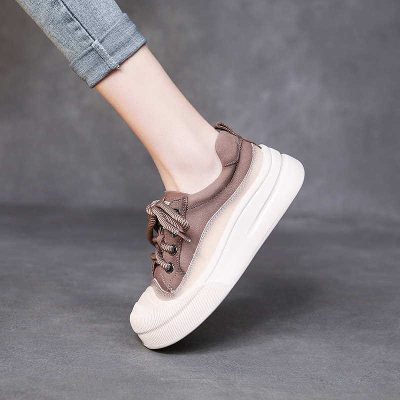 Women's Fashion Full Grain Cow Leather Lace-up Casual Shoes