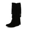 Women’s High Boots Autumn And Winter Suede High Heel Tassel Boots Below The Knee
