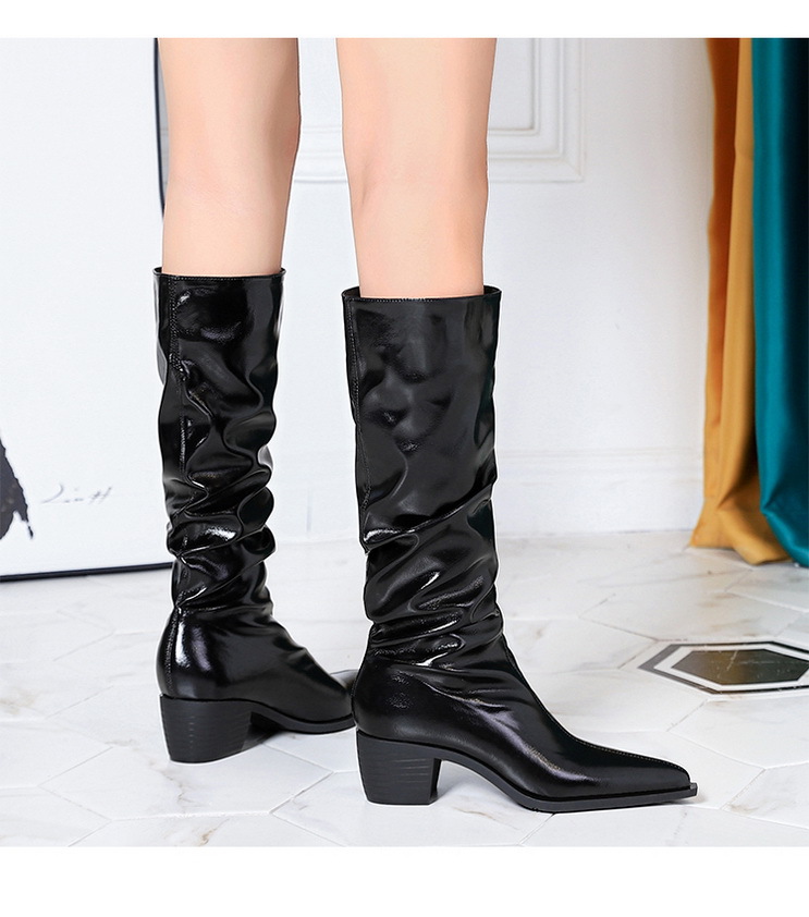 Women's Over-the-knee Boots Chunky Heel Mid Heel Pointed Wrinkled Surface