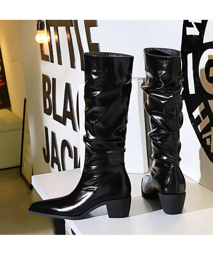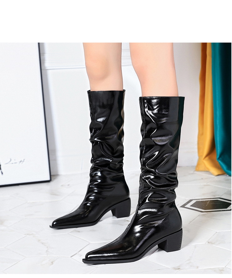 Women’s Over-the-knee Boots Chunky Heel Mid Heel Pointed Wrinkled Surface