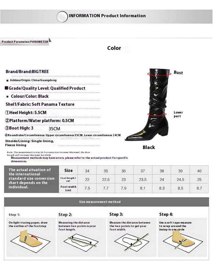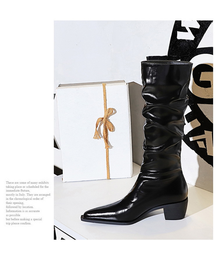 იყავით პირველი შემფასებელი: „Women’s Over-the-knee Boots Chunky Heel Mid Heel Pointed Wrinkled Surface“