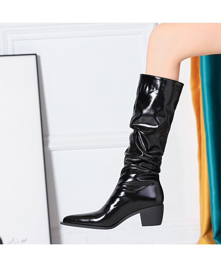 Women's Over-the-knee Boots Chunky Heel Mid Heel Pointed Wrinkled Surface
