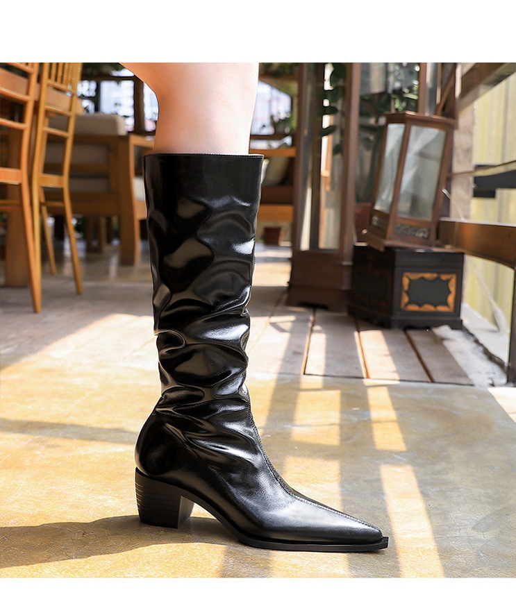 Women’s Over-the-knee Boots Chunky Heel Mid Heel Pointed Wrinkled Surface