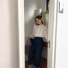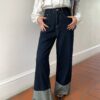 Women’s spring and autumn straight leg trousers with curled design jeans