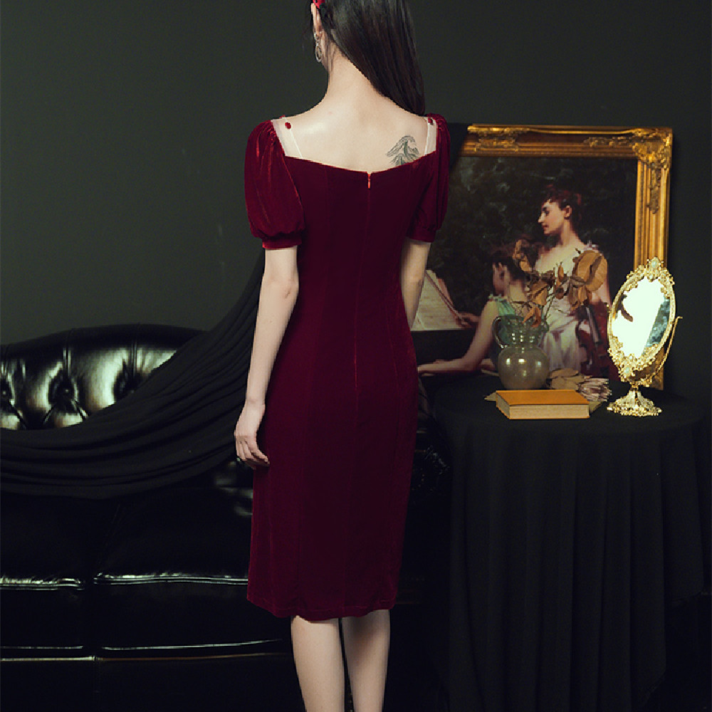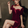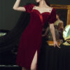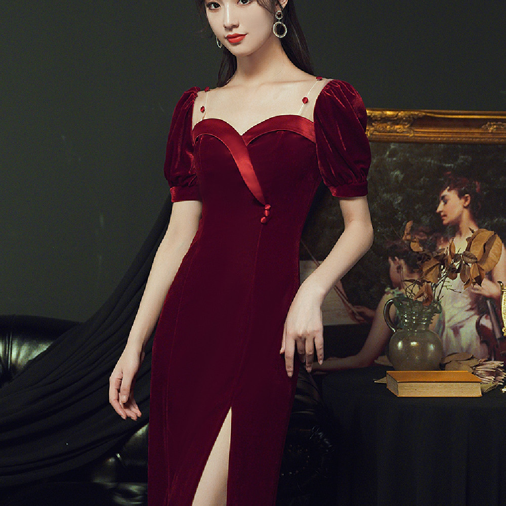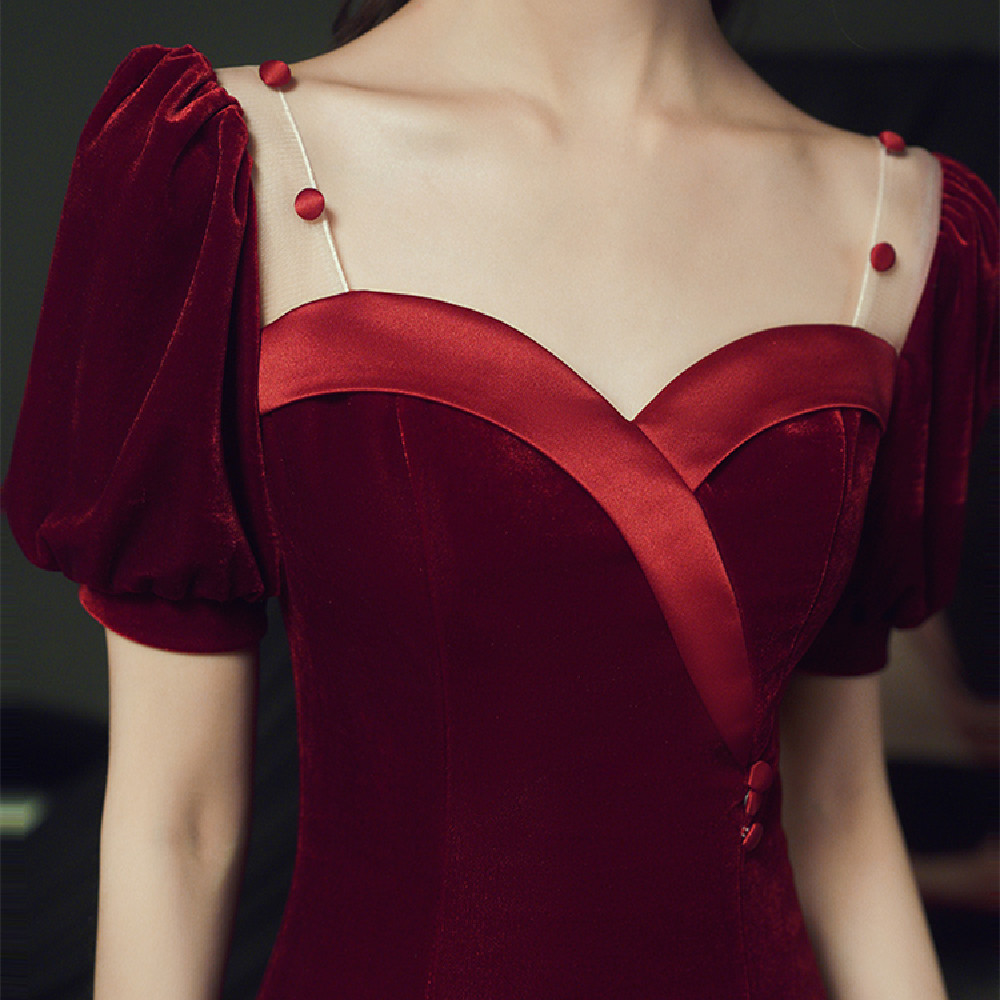 იყავით პირველი შემფასებელი: „Women’s Velvet Wine Red Banquet Dress“