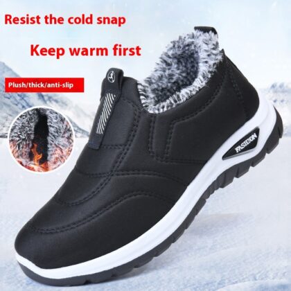 Fleece-lined Thick Waterproof Leather Cotton Shoes