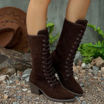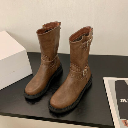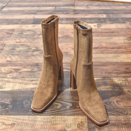 New Square Toe Fleece-lined New Chunky Heel French Boots