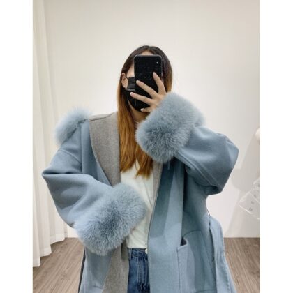 Hot Sale Ladies Fashion Wool Blend Faux Fur Coat