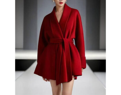 Red Temperament Long Sleeve Women’s Woolen Coat