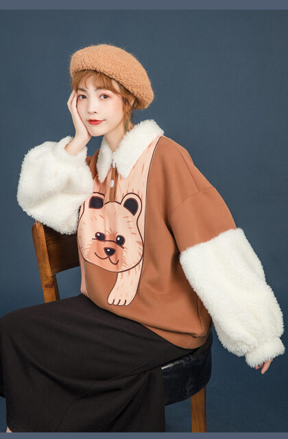 Lamb wool loose thick denim jacket
