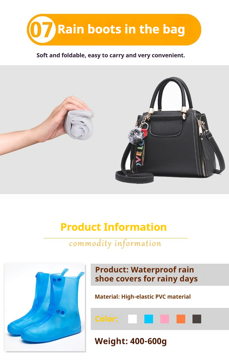 For indoor and outdoor use. Indoor, wear the waterproof shoe cover to do Cleaning work. Outdoor, put on it to School/Office/Garden/Park/Farm/Disneyland/Golf Course/Forest etc. on rainy days. Perfect for Traveling/Cycling/Walking/Shooting/Hiking/Fishing outside.