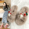Christmas Hat Fluffy Slippers Women’s Warm Toe Covering Cotton Slippers