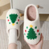 Christmas Home Slippers Cute Cartoon Santa Claus Cotton Slippers For Women And Men Couples Winter Warm Furry Shoes