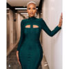 Dark Green Stand Collar Long Sleeve Slim Fit Bandage Dress
