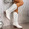 Embroidered Western Cowboy Pointed Toe Chunky Heel Knight Boots