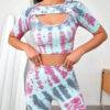 European And American Summer High Waist Sexy Tie-dye Breathable Skinny Yoga Pants Short Sleeve Suit