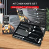 Configuration: 8-inch chef’s knife, 8-inch slicing knife, 7-inch kitchen knife, 5-inch universal knife, multifunctional scissors, ceramic melon cutter