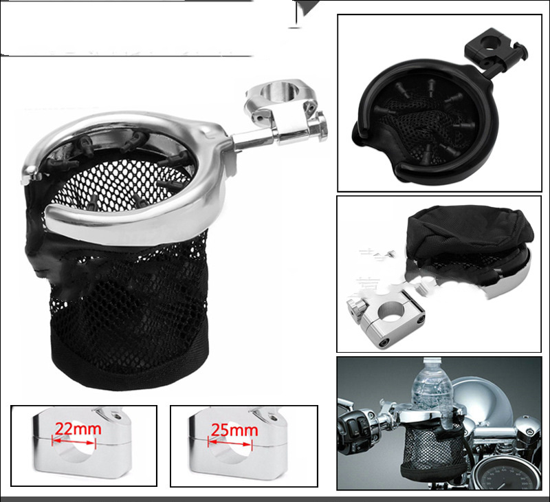 Product information: Name: Motorcycle Modified Water Cup Holder Bottle Holder Color: silver black Material: Iron Applicable to: All Prince models, 22-caliber handlebar, 25-caliber Weight: 0.437kg